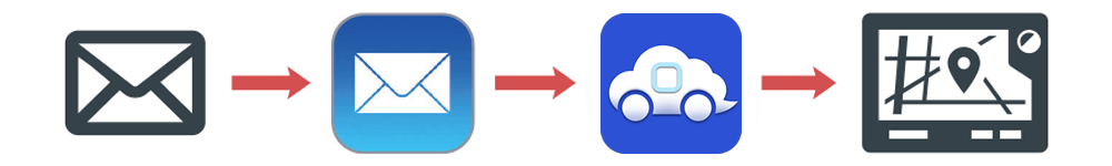 お客様が発行されるメールにNaviConURLを配置し、メーラーからNaviConを起動してカーナビに地点を設定する。