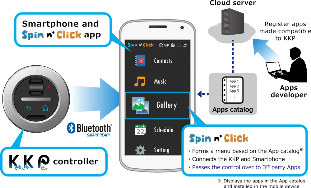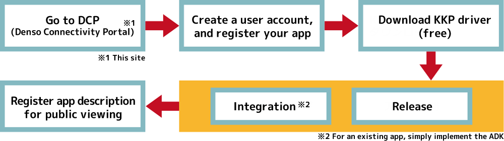 Download the free ADK ( Application Development Kit ) as follows and install in your apps to enable development of an app which can be operated by a remote controller.