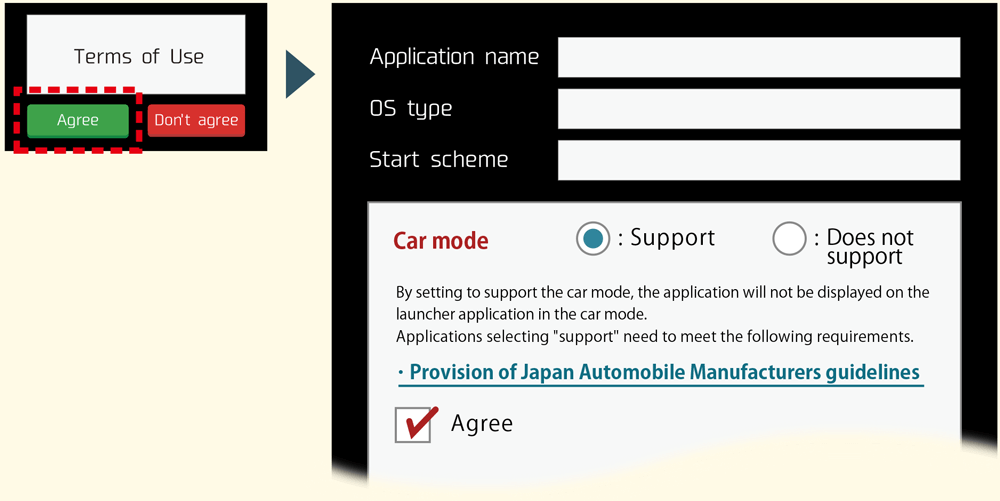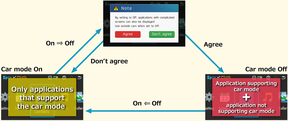 Car mode OffDisplayed applications are not controlled Car mode OnDisplayed applications are controlled |