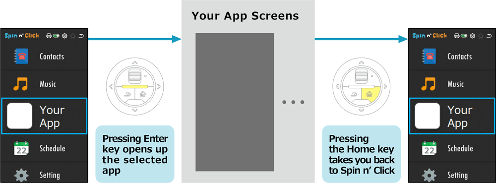@Override public boolean onPressUpButton(int button) { return false; } * Return “false” when (int button) is “Home”. |